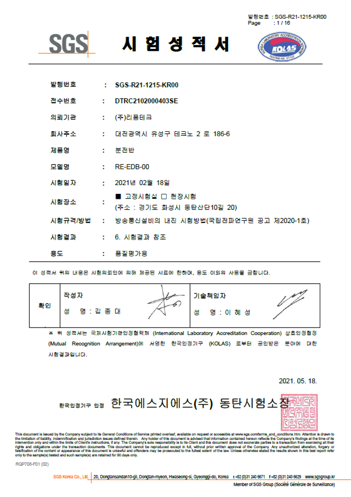 [시험 성적서] 분전반 내진시험성적서(전파연구원)
