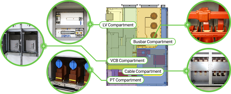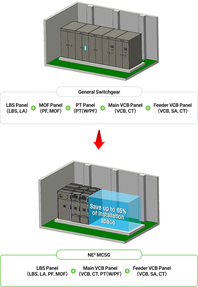 The NE² MCSG, designed with customer safety as the top priority, has obtained full type test and internal arc certification based on IEC 62271-200. Its compartmentalized structure maximizes internal arc performance, and with patented technology applied, it successfully passed the Telcordia Zone 4 seismic test.