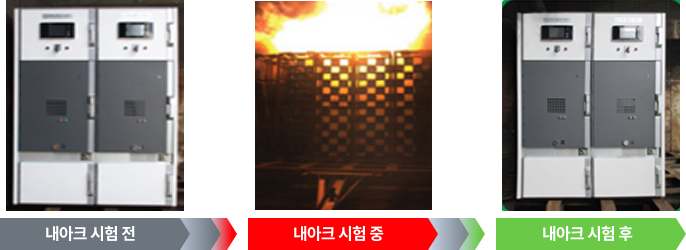 고객의 안전을 최우선으로 생각한 NE² MCSG 는 IEC 62271-200 기반의 Full type test 및 내아크 Certificate를 획득하였으며, 격실 구조를 통해 내아크 성능을 극대화하고, 특허기술을 적용하여 Telcodia Zone 4 내진시험에 성공하였습니다.